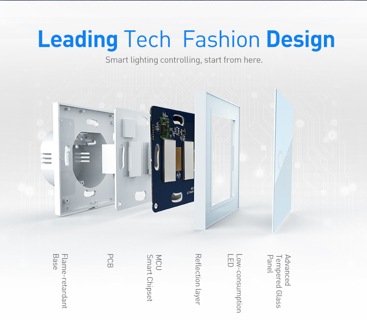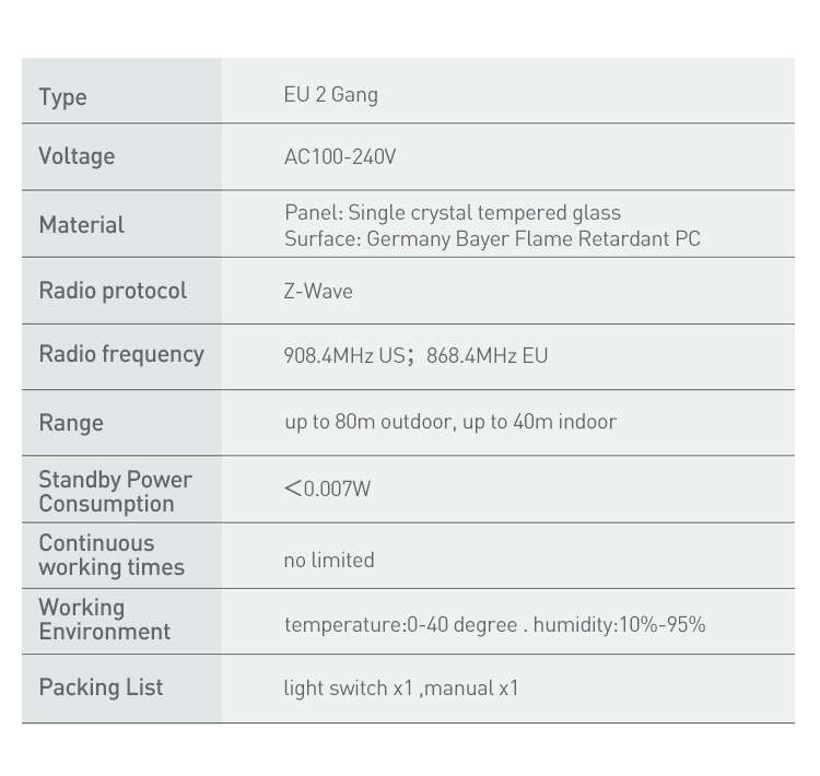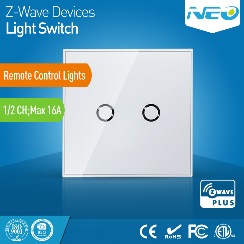 EU standard 868.4mhz Z-wave 2 gangs red led indicator touch sensitive light switch